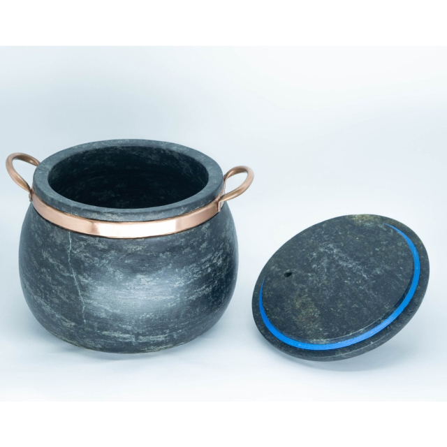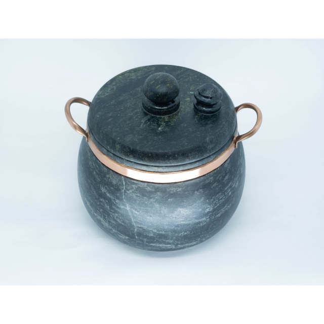 Ø Panela de pressão em pedra sabão com longa durabilidade; retém o calor por longo tempo deixando o alimento quente por muito mais tempo.