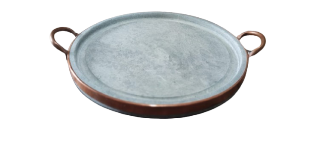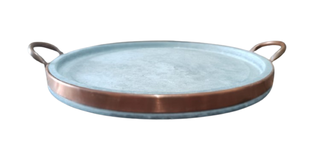 Grelha rebaixada pedra Sabão 30 cm com alças de cobre |